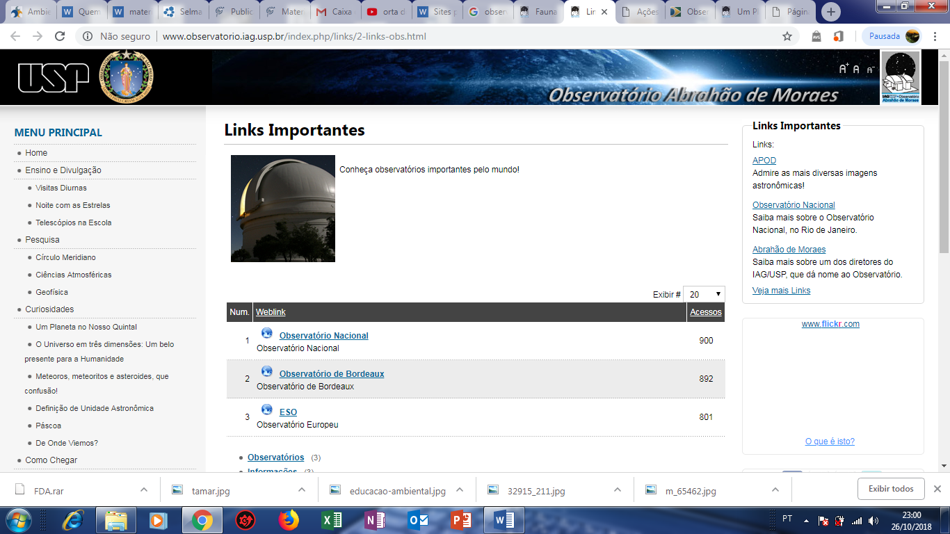 Algumas Instituições que promovem papel relevante no cenário científico brasileiro voltadas para o conhecimento de questões físicas, ambientais e sócio culturais.