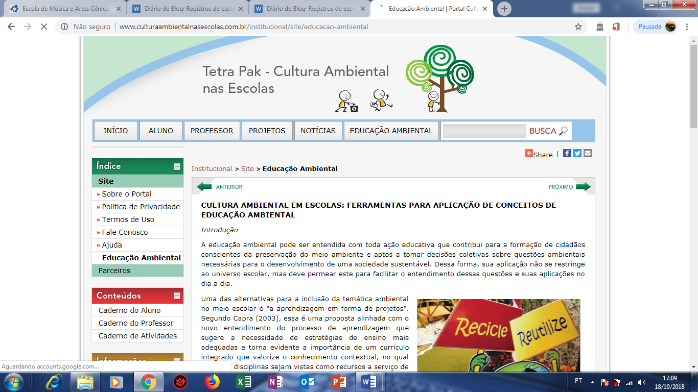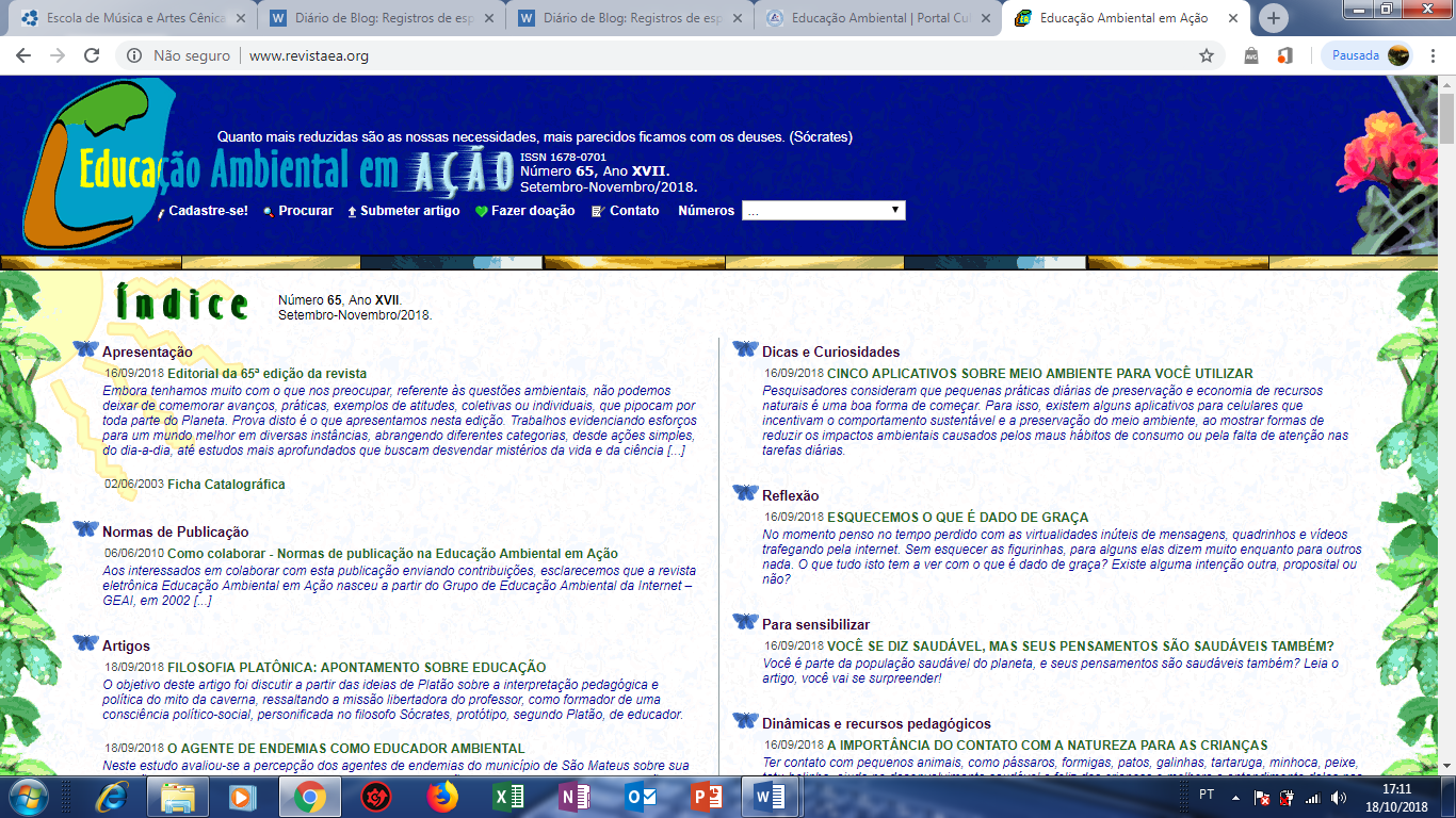 Aqui você encontra sugestões e dicas de sites pedagógicos na área da educação ambiental concernente a sua área de formação e/ou atuação.